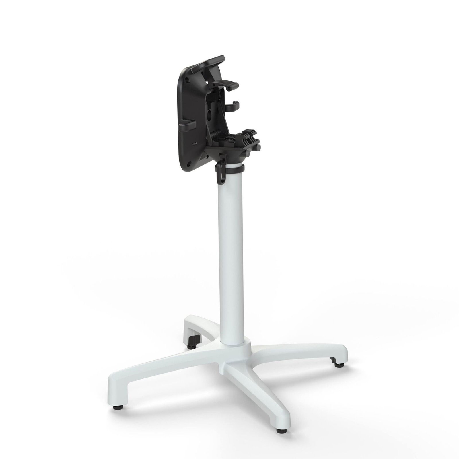 Dotato di un meccanismo di chiusura che permette di ripiegare il piano verso il basso e di riporre il tavolo in posizione verticale quando non è in uso e di un gancio porta borse.