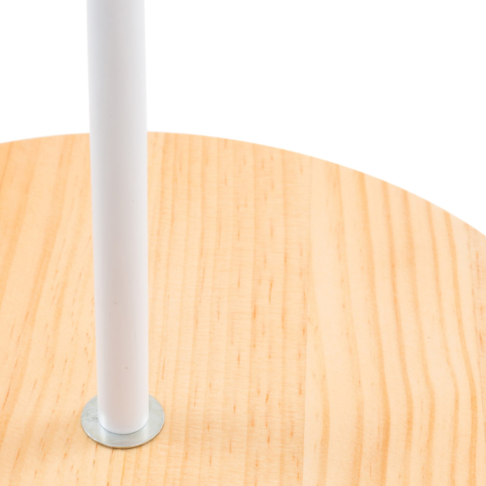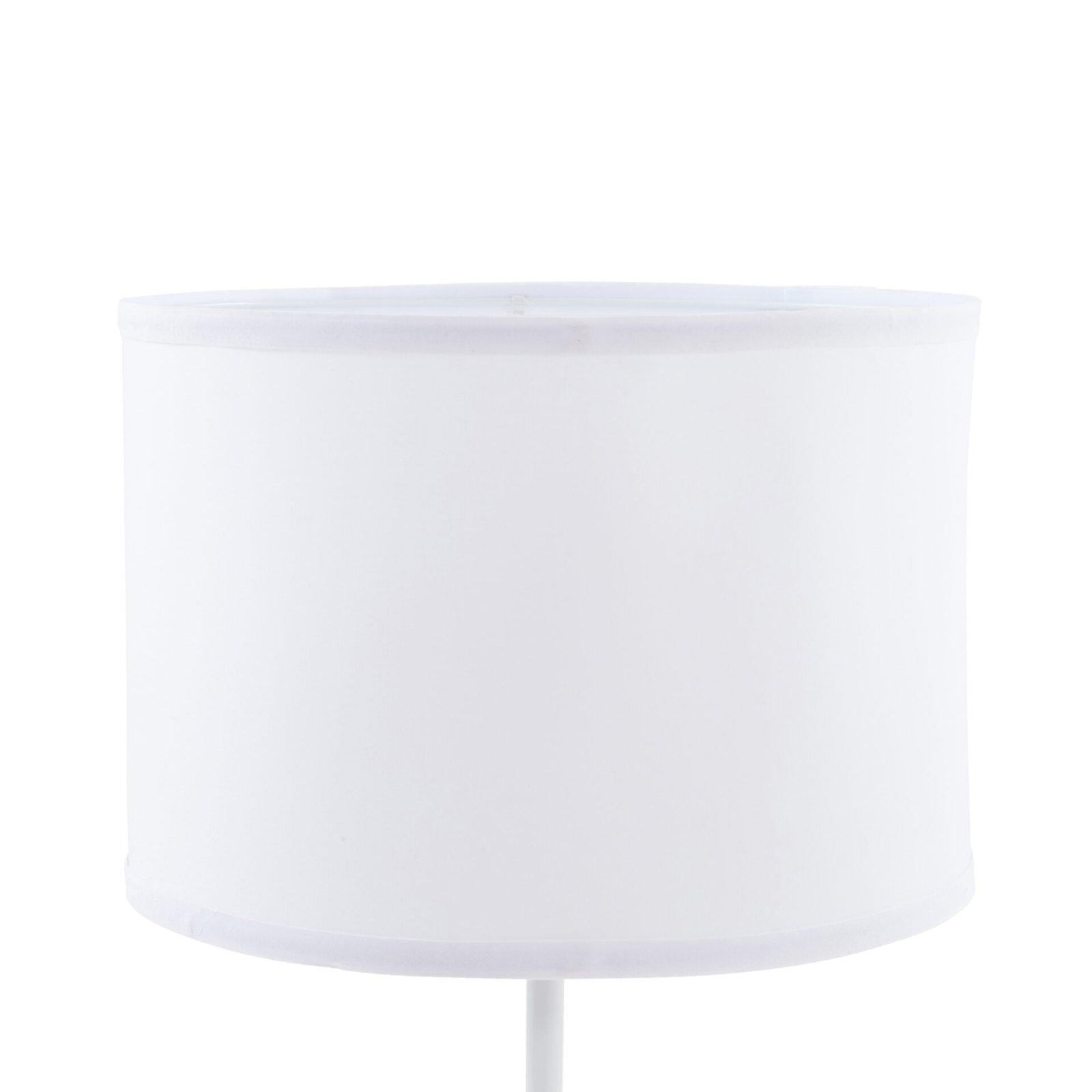 Lampada da terra dal design scandinavo, tre sottili aste, in metallo verniciato bianco, sorreggono un tavolino in legno, dal quale si dirama il corpo della lampada sormontato da un paralume in tessuto bianco che consente una perfetta diffusione della luce. Lampada versatile e d’arredo è ideale per ambienti come salotti, open space o living.