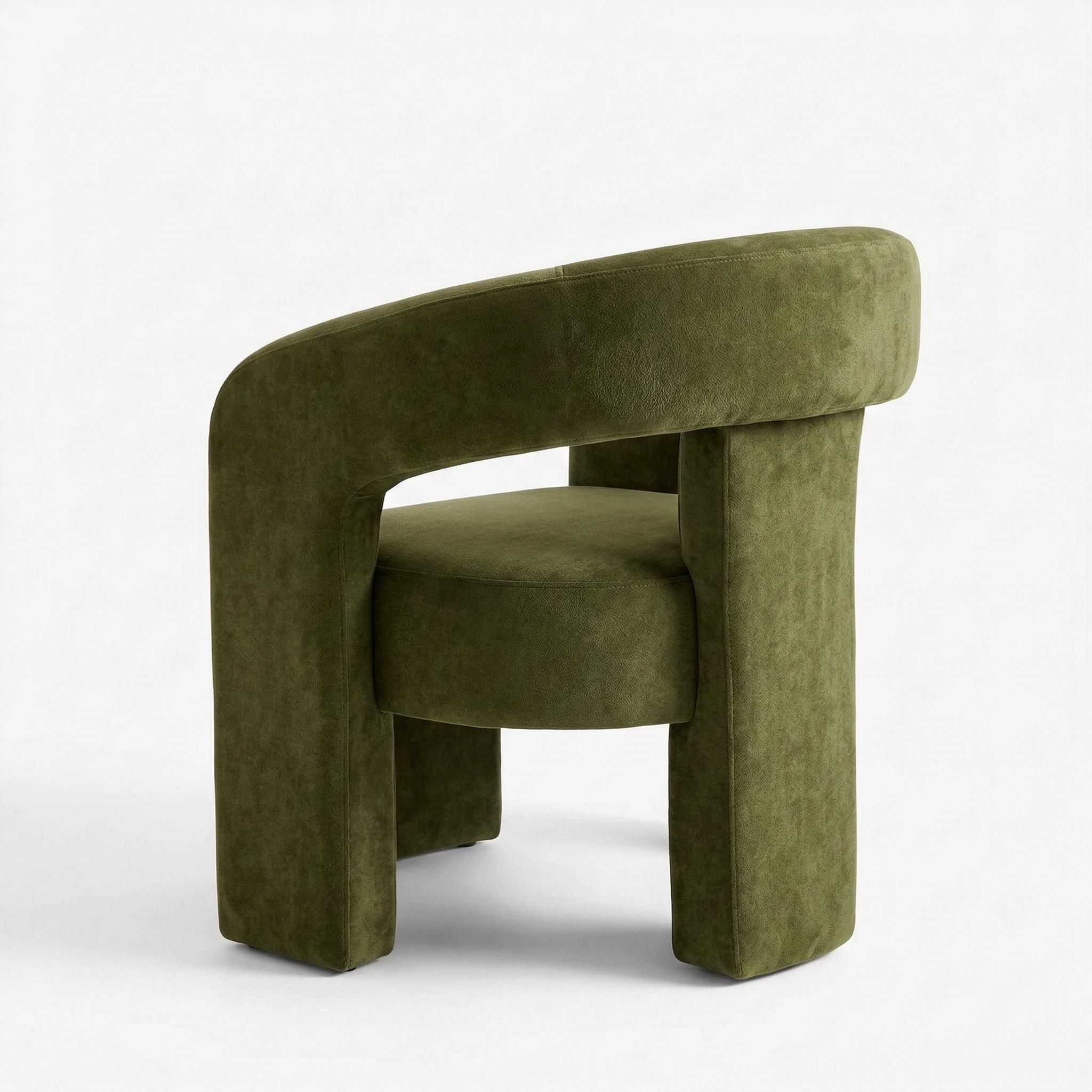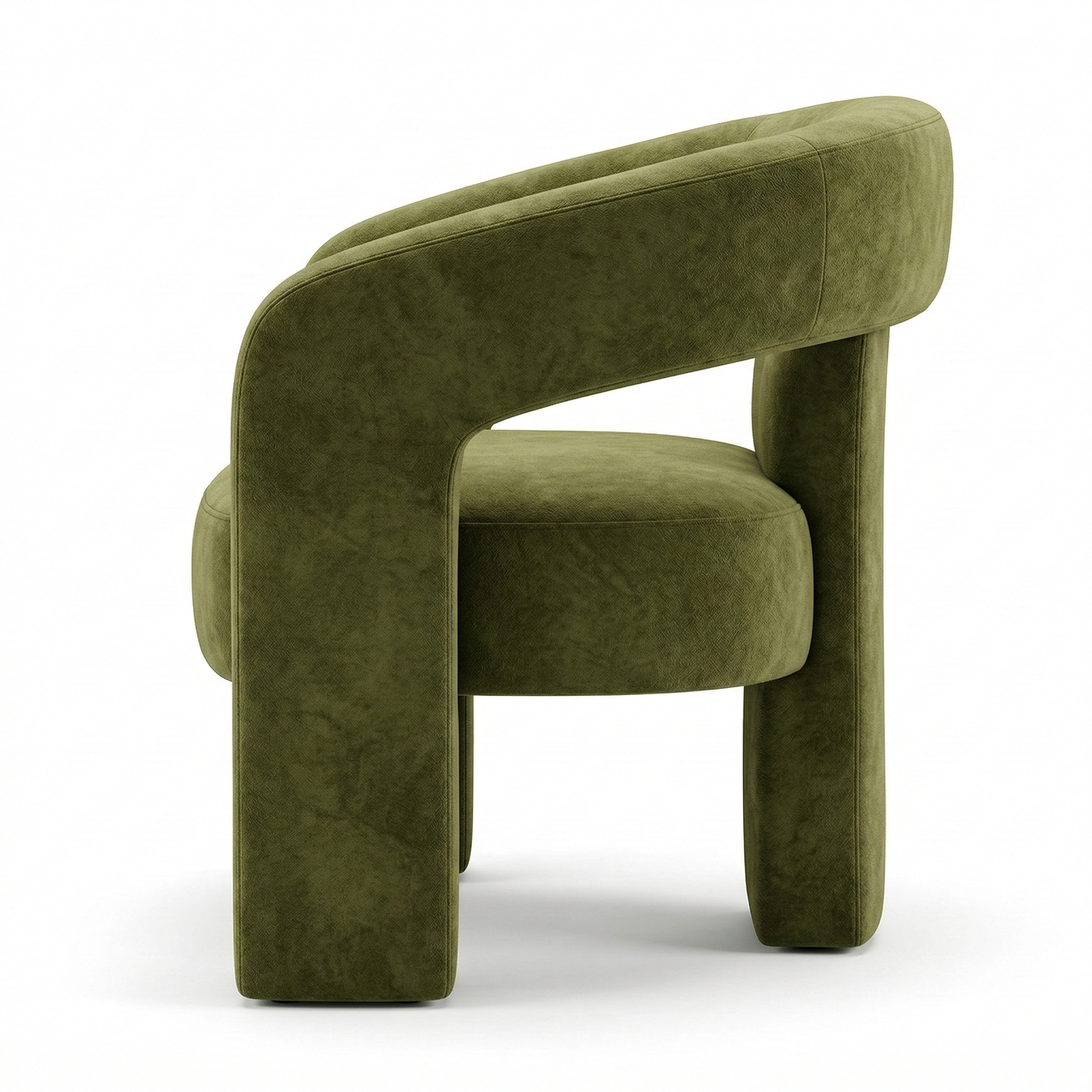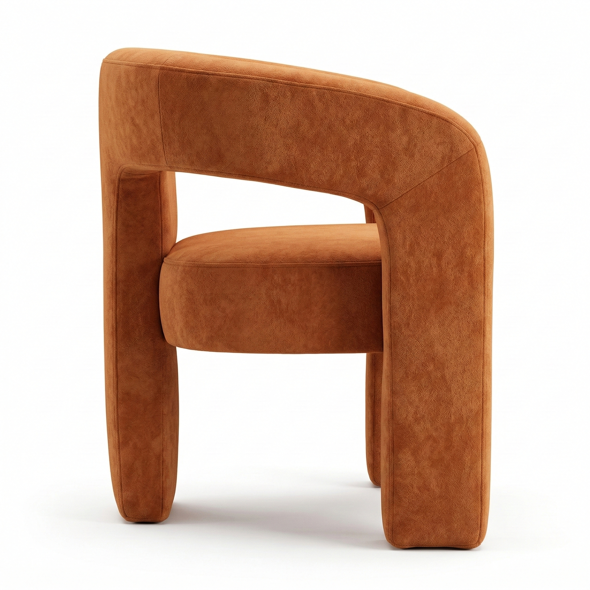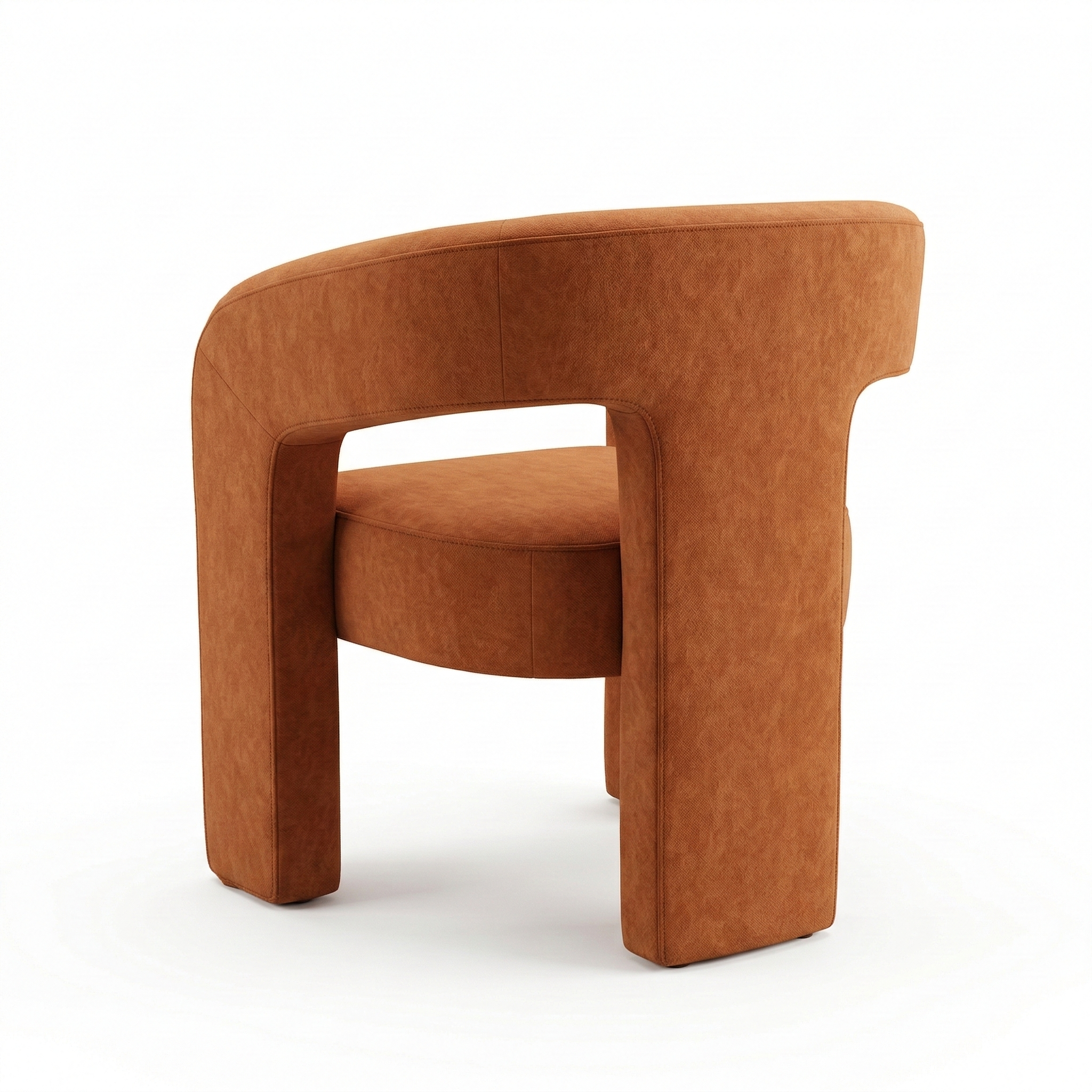 A contemporary, enveloping dining armchair designed to offer maximum comfort and refined style. The fully upholstered frame features soft lines and full volumes that lend the seat an elegant and welcoming feel. The curved backrest blends seamlessly with the armrests, creating a refined and functional shape. The wide, comfortable seat, combined with the integrated base, ensures stability, solidity, and a modern aesthetic with a strong visual impact.