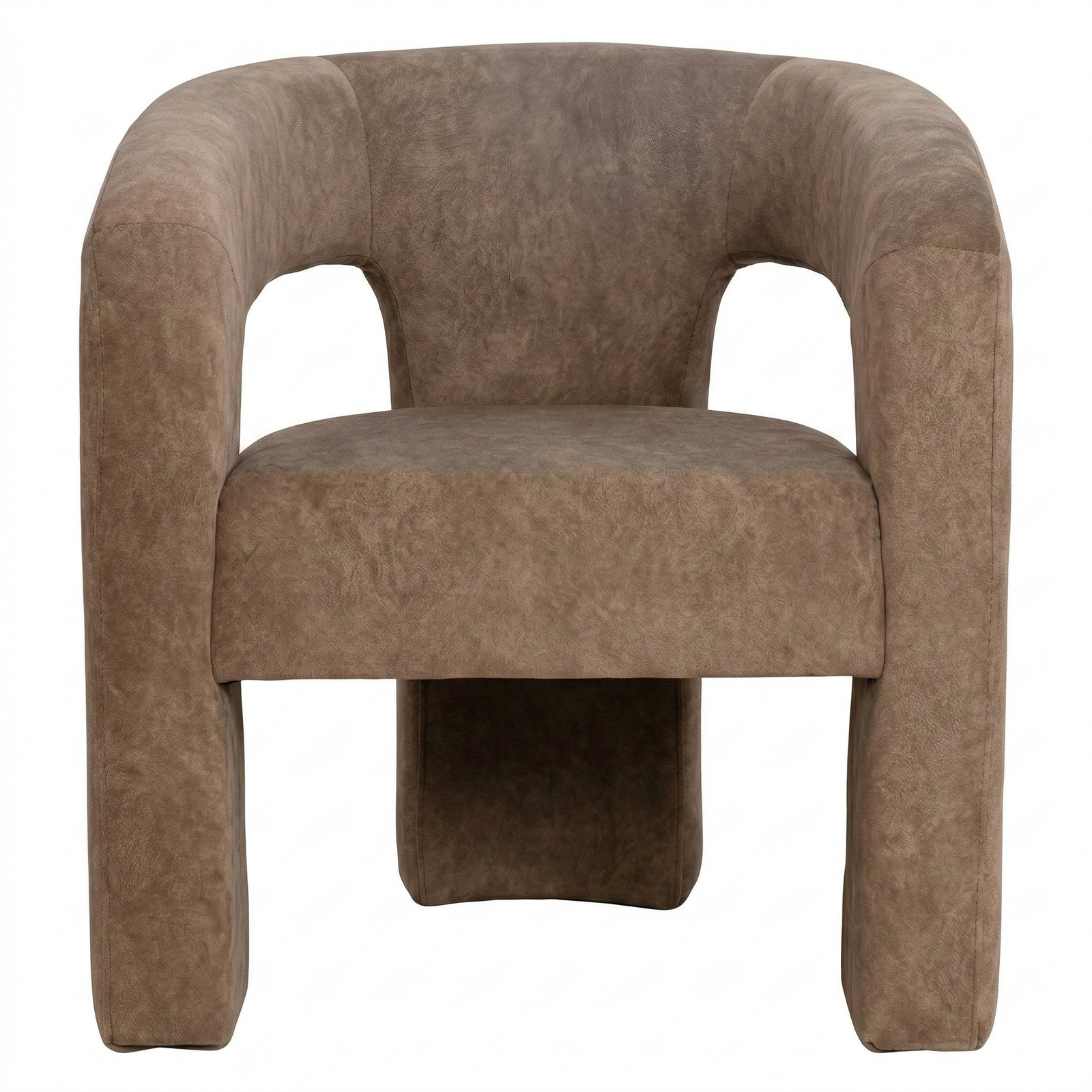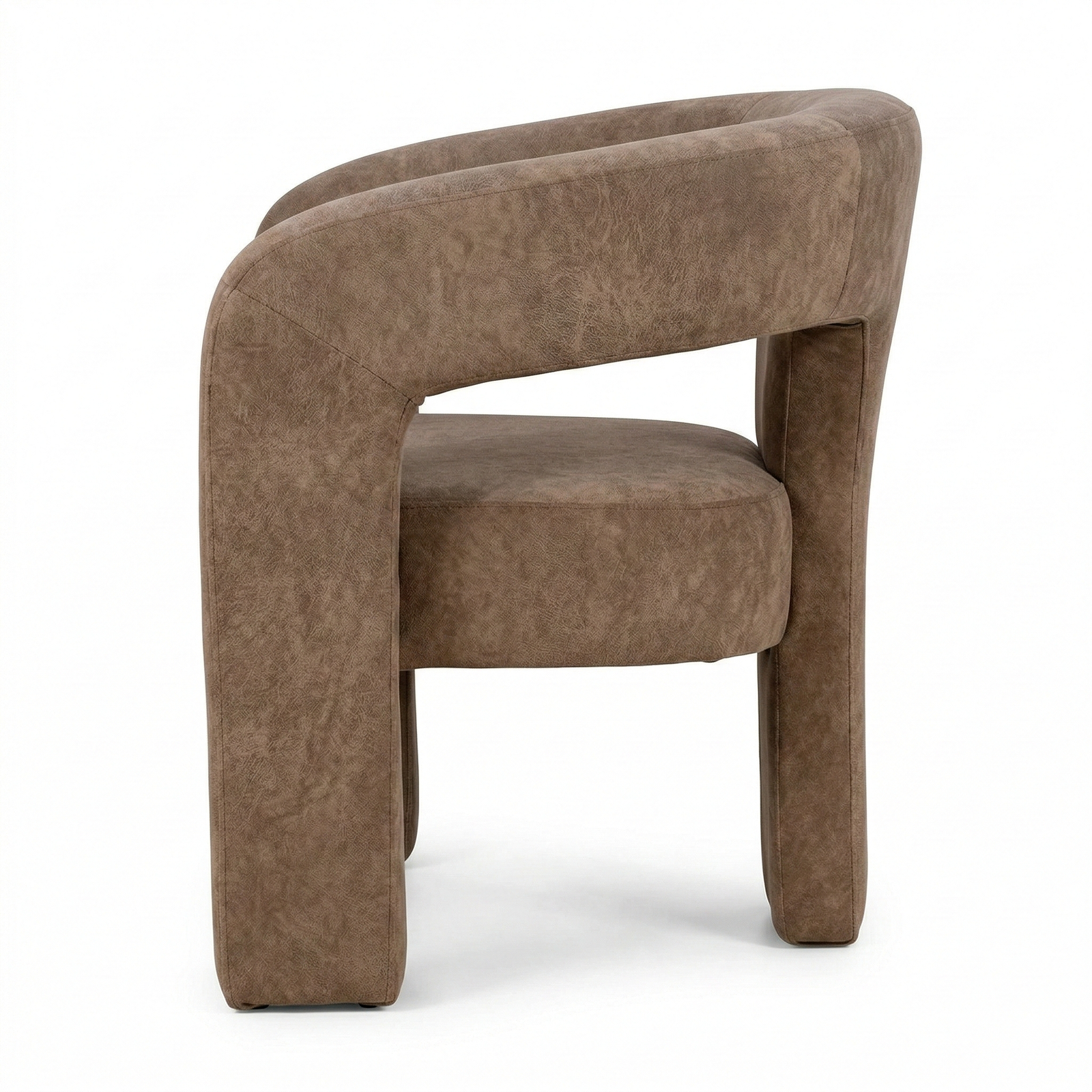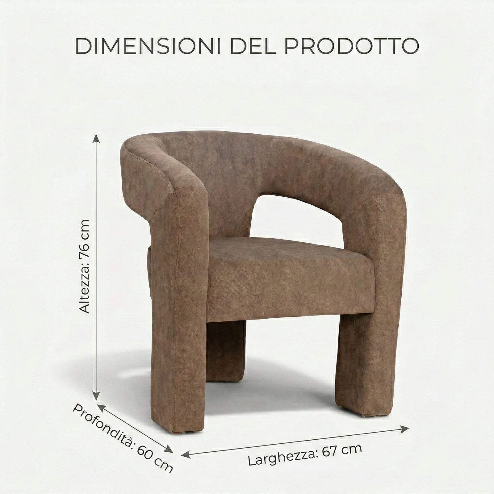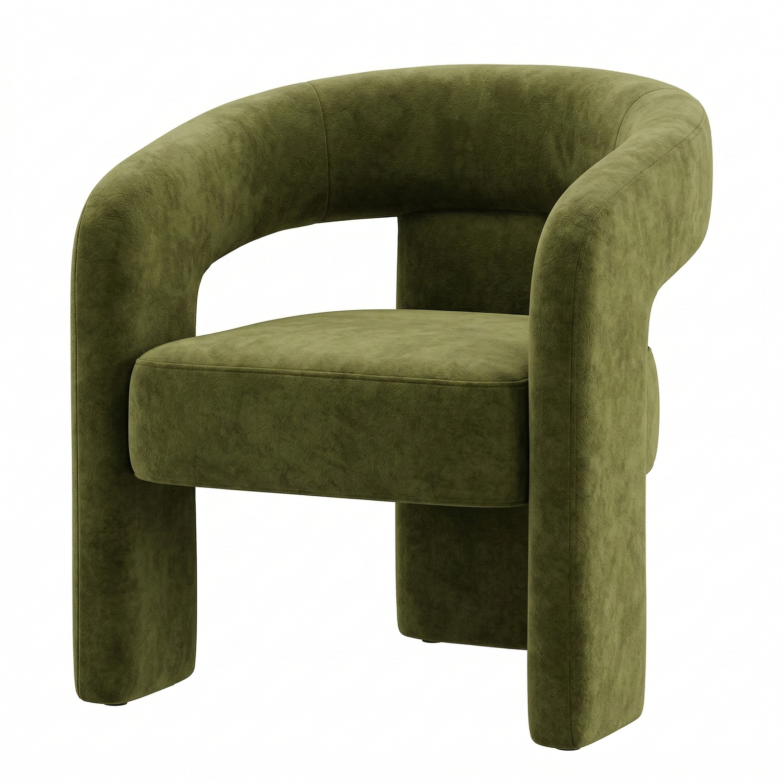 A contemporary, enveloping dining armchair designed to offer maximum comfort and refined style. The fully upholstered frame features soft lines and full volumes that lend the seat an elegant and welcoming feel. The curved backrest blends seamlessly with the armrests, creating a refined and functional shape. The wide, comfortable seat, combined with the integrated base, ensures stability, solidity, and a modern aesthetic with a strong visual impact.
