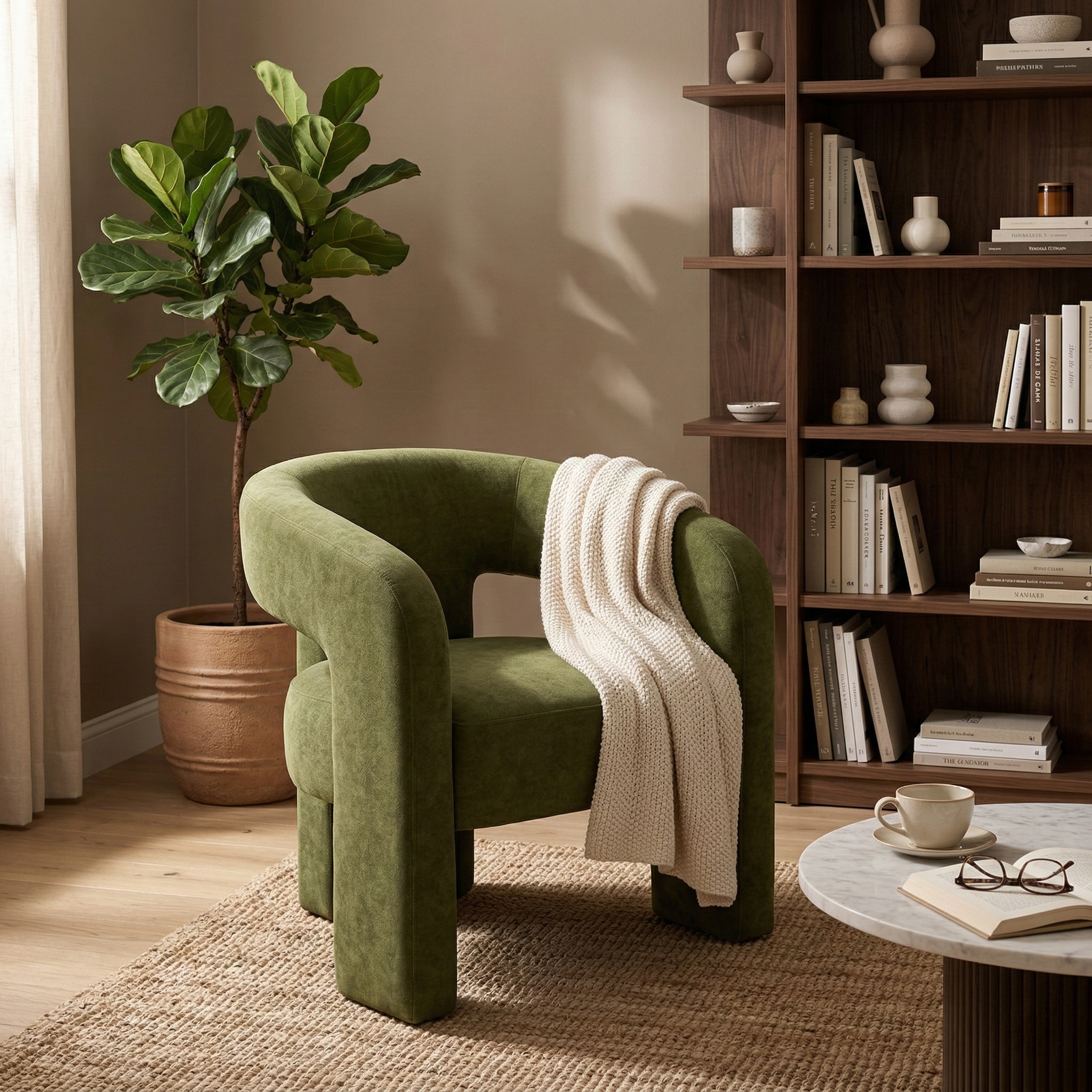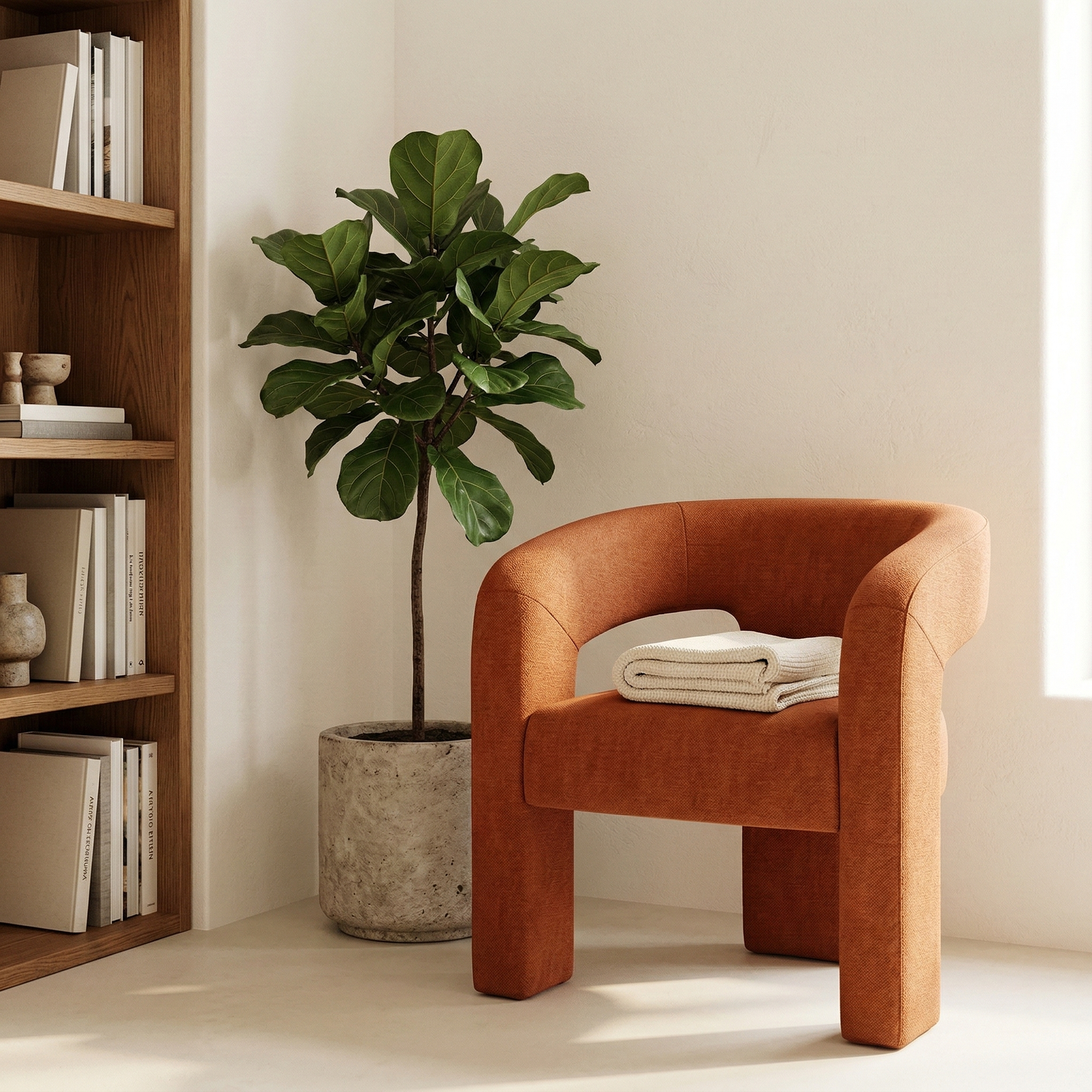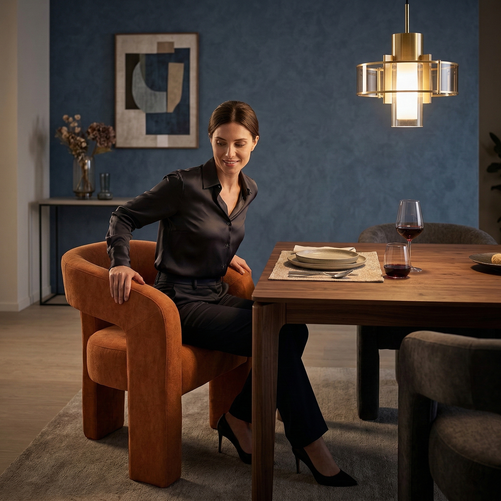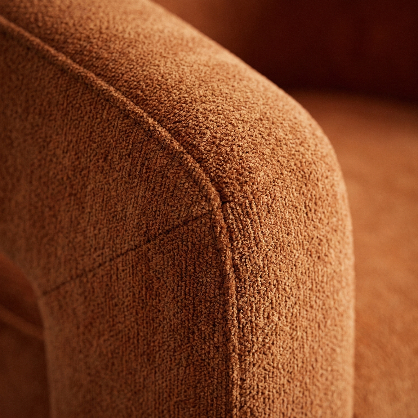 A contemporary, enveloping dining armchair designed to offer maximum comfort and refined style. The fully upholstered frame features soft lines and full volumes that lend the seat an elegant and welcoming feel. The curved backrest blends seamlessly with the armrests, creating a refined and functional shape. The wide, comfortable seat, combined with the integrated base, ensures stability, solidity, and a modern aesthetic with a strong visual impact.