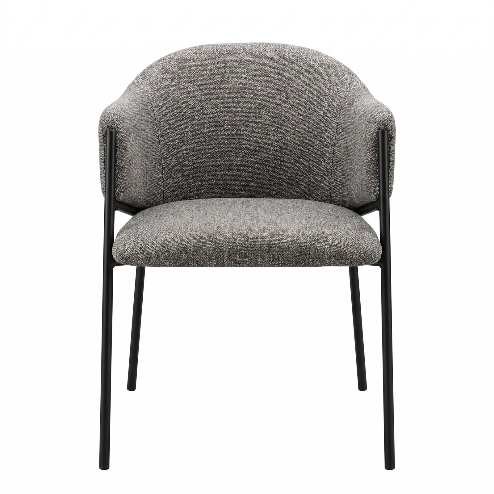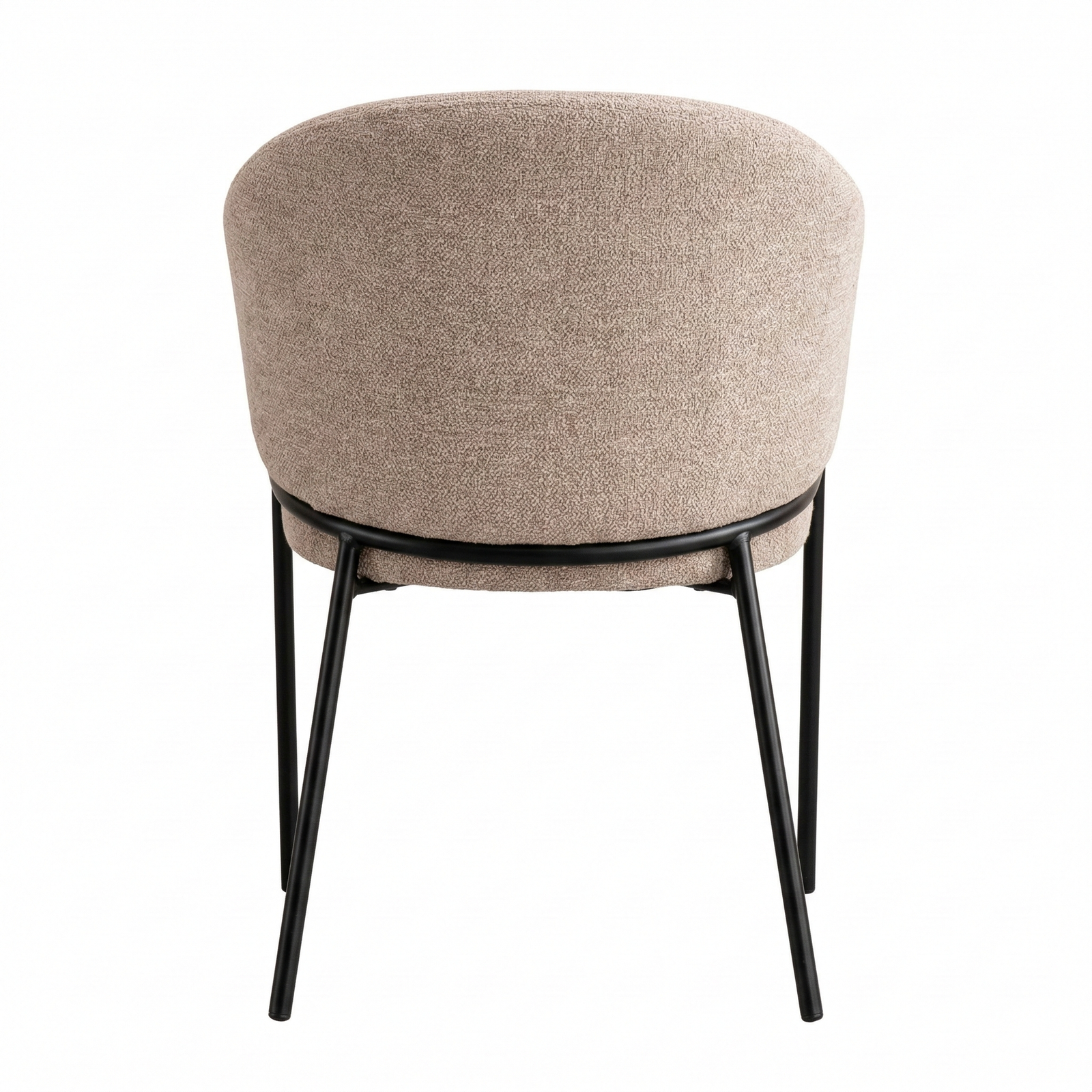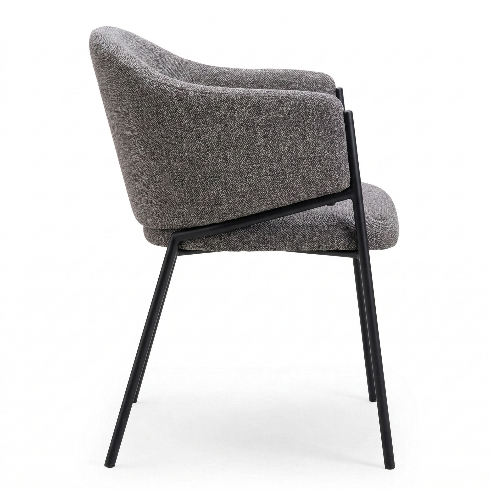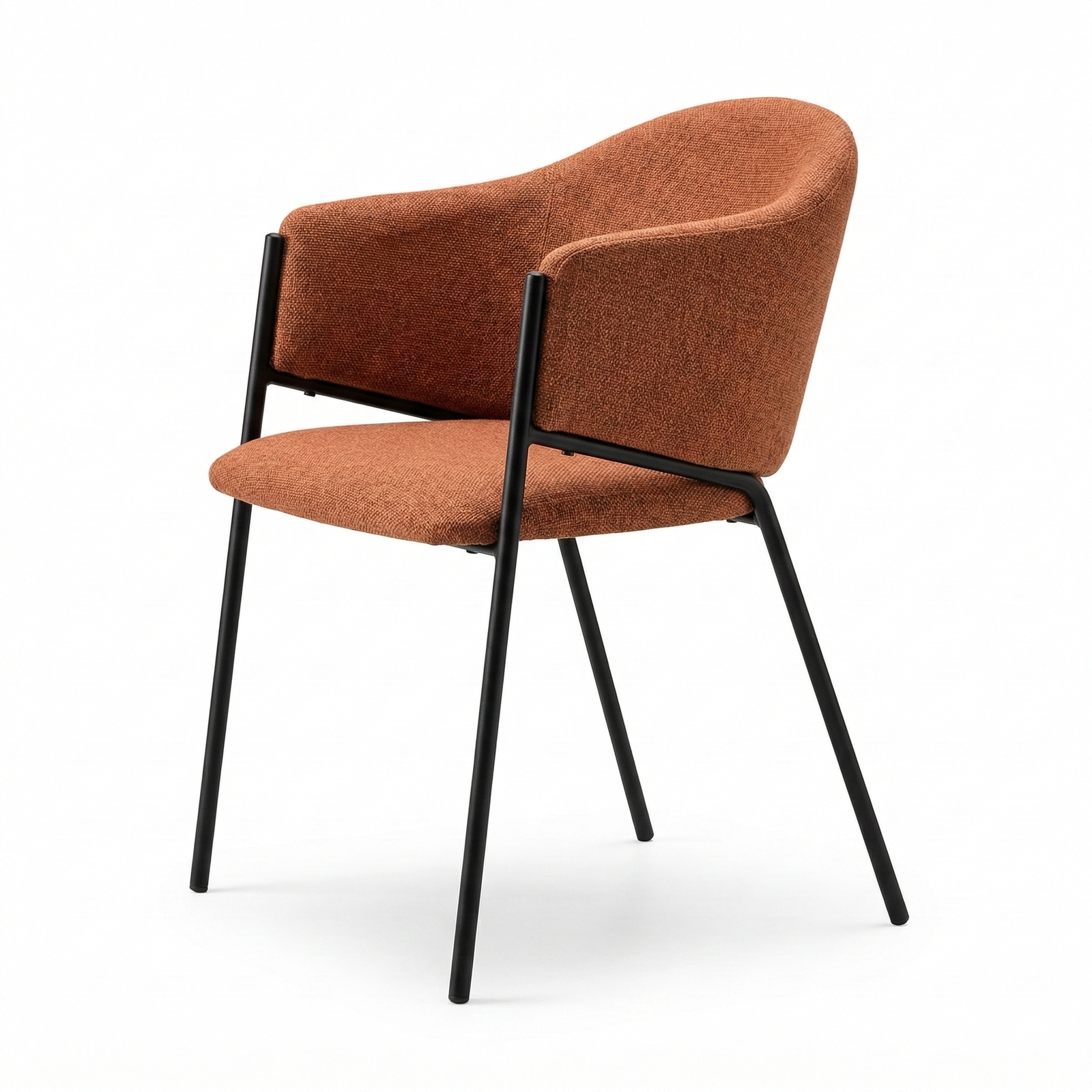 This armchair features a modern and elegant design, ideal for stylishly completing your dining or living area. The wide, padded seat ensures exceptional comfort, while the enveloping backrest with integrated armrests creates a harmonious, soft, and ergonomic shape. The four slender, slightly angled metal legs lend a visual lightness to the structure without sacrificing stability. The Aragon fabric upholstery adds practicality and functionality, thanks to its water-repellent, stain-resistant, and wear-resistant properties, making this armchair the perfect choice for everyday use.