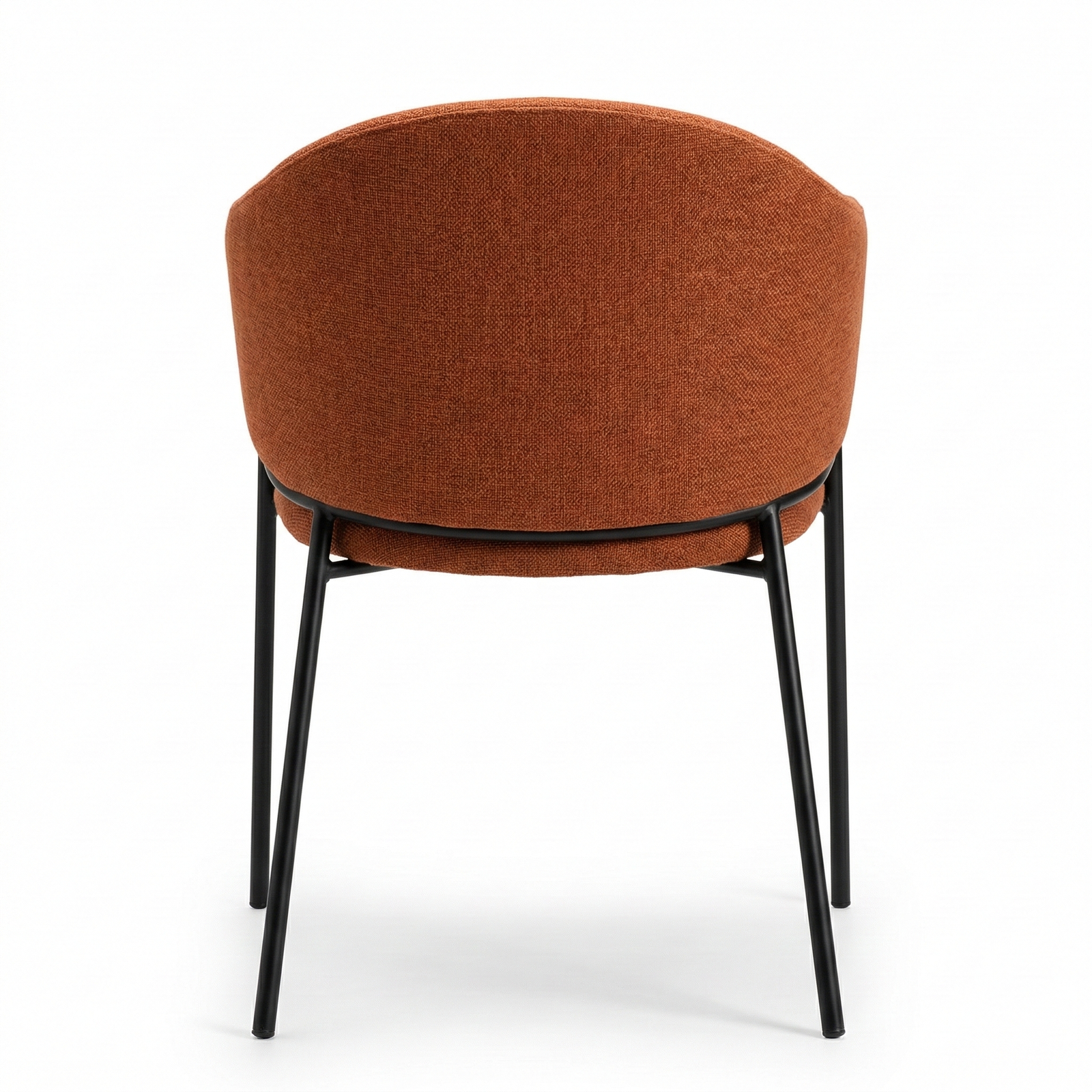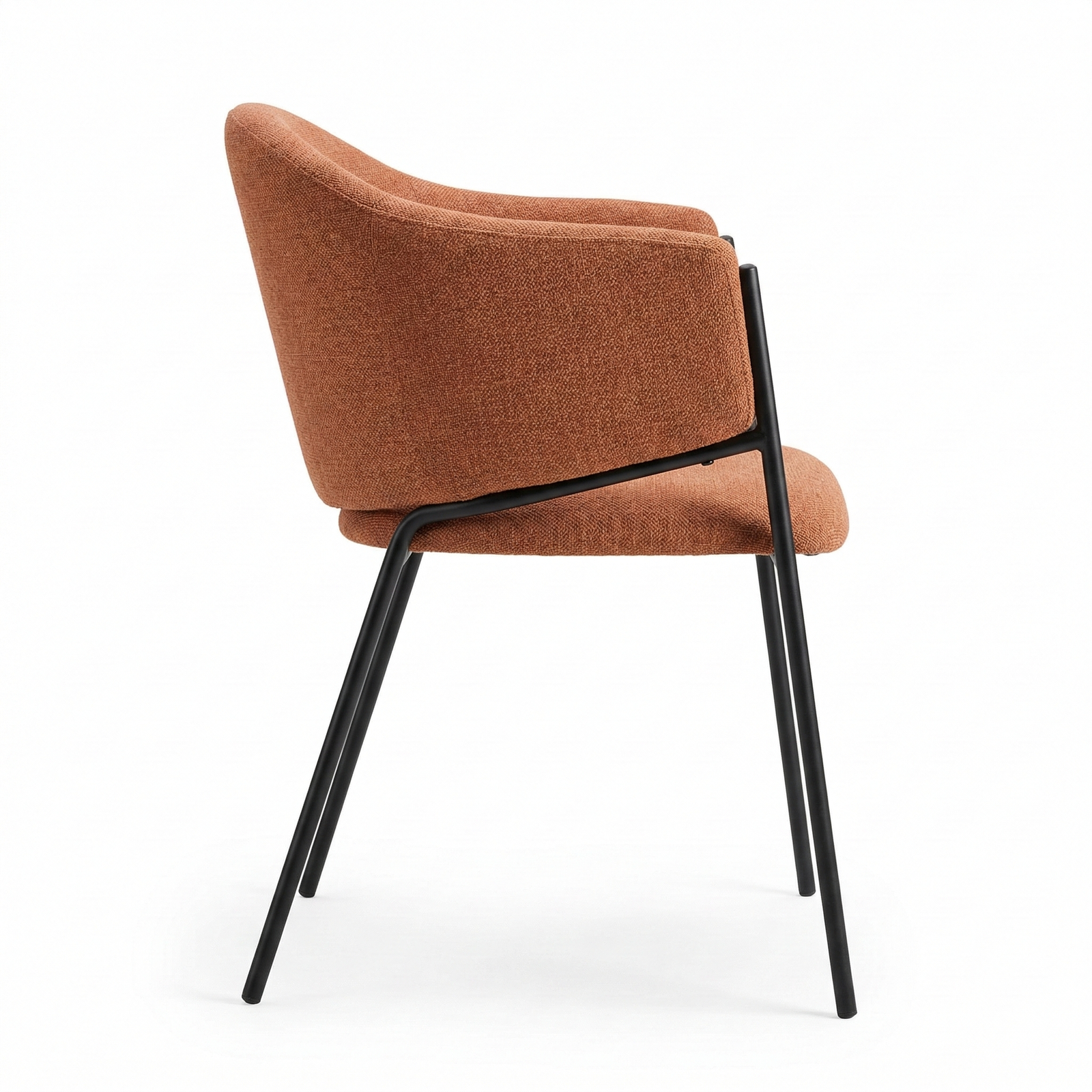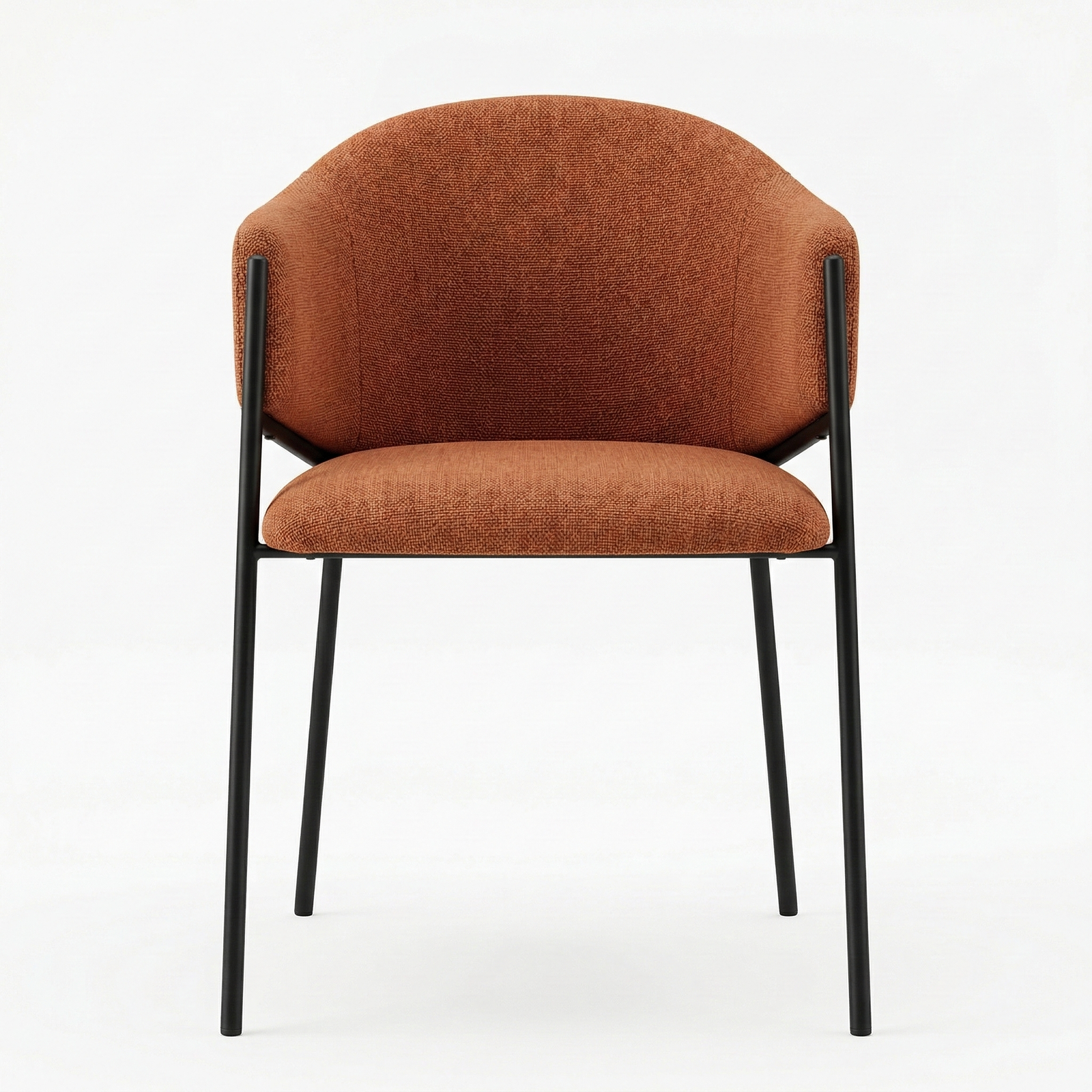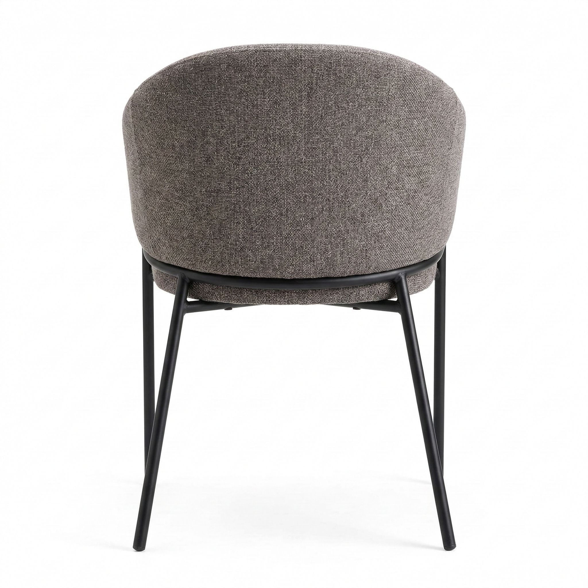 This armchair features a modern and elegant design, ideal for stylishly completing your dining or living area. The wide, padded seat ensures exceptional comfort, while the enveloping backrest with integrated armrests creates a harmonious, soft, and ergonomic shape. The four slender, slightly angled metal legs lend a visual lightness to the structure without sacrificing stability. The Aragon fabric upholstery adds practicality and functionality, thanks to its water-repellent, stain-resistant, and wear-resistant properties, making this armchair the perfect choice for everyday use.
