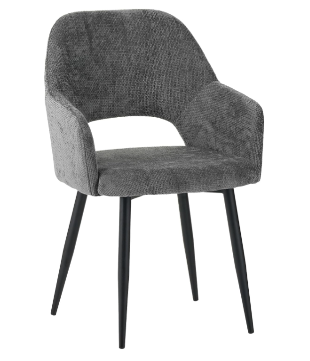La poltrona GISELLE presenta un design pulito e contemporaneo, caratterizzato da linee semplici e un profilo elegante. Lo schienale e i braccioli formano una curva continua che crea una seduta avvolgente e confortevole. Il rivestimento in tessuto Aragon o Econabuk si abbina a gambe in metallo nero sottili e leggermente inclinate, per un risultato moderno e raffinato.