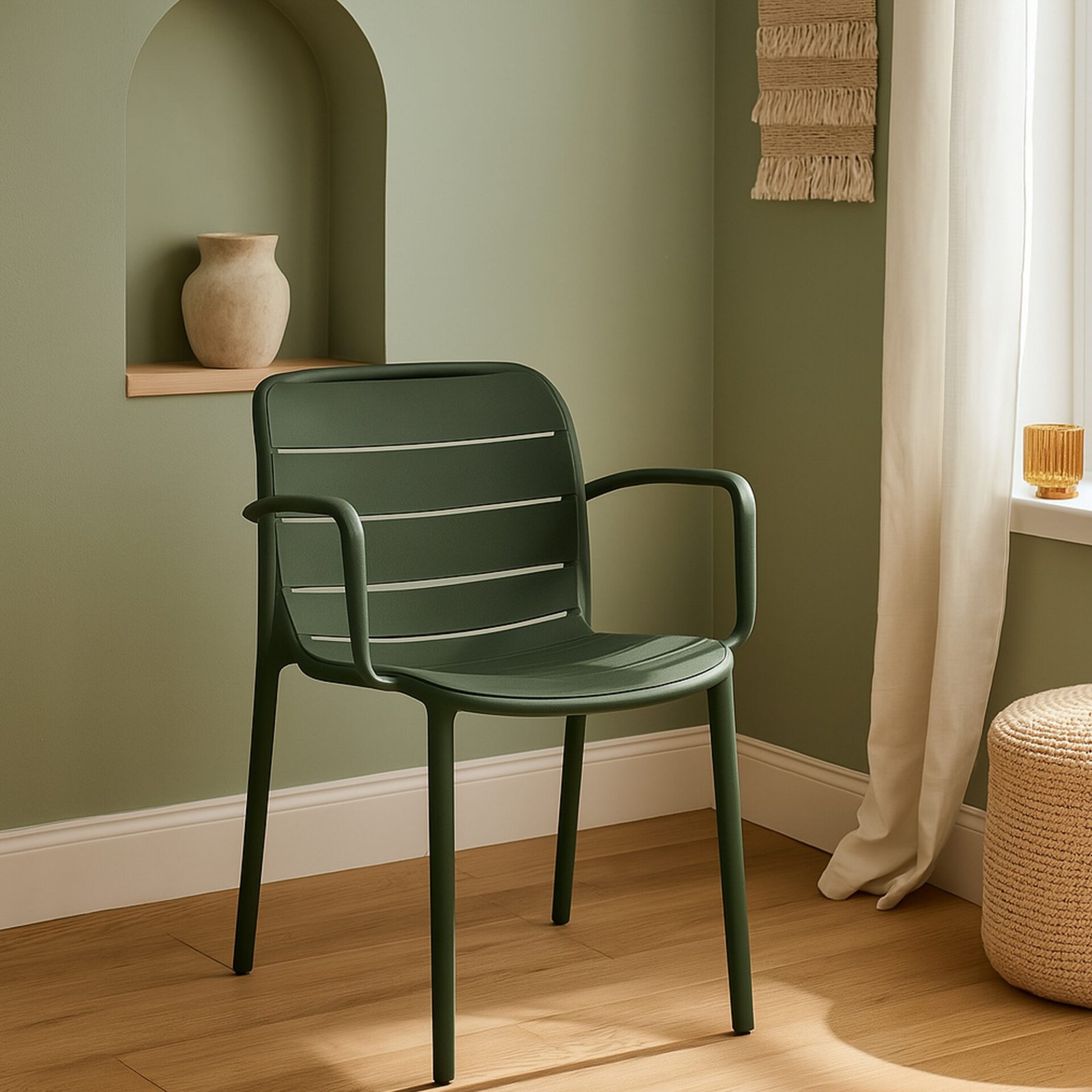 Poltrona elegante e funzionale, realizzata in polipropilene di alta qualità, disponibile in una sofisticata tonalità di verde inglese, Terracotta, Ambra oppure Bianca. Con un design moderno e resistente, è perfetta per l’arredamento di ambienti domestici, uffici, ristoranti o spazi pubblici. Combinando stile e praticità, la sedia Itaca è una scelta ideale per chi cerca un arredamento duraturo e di tendenza.