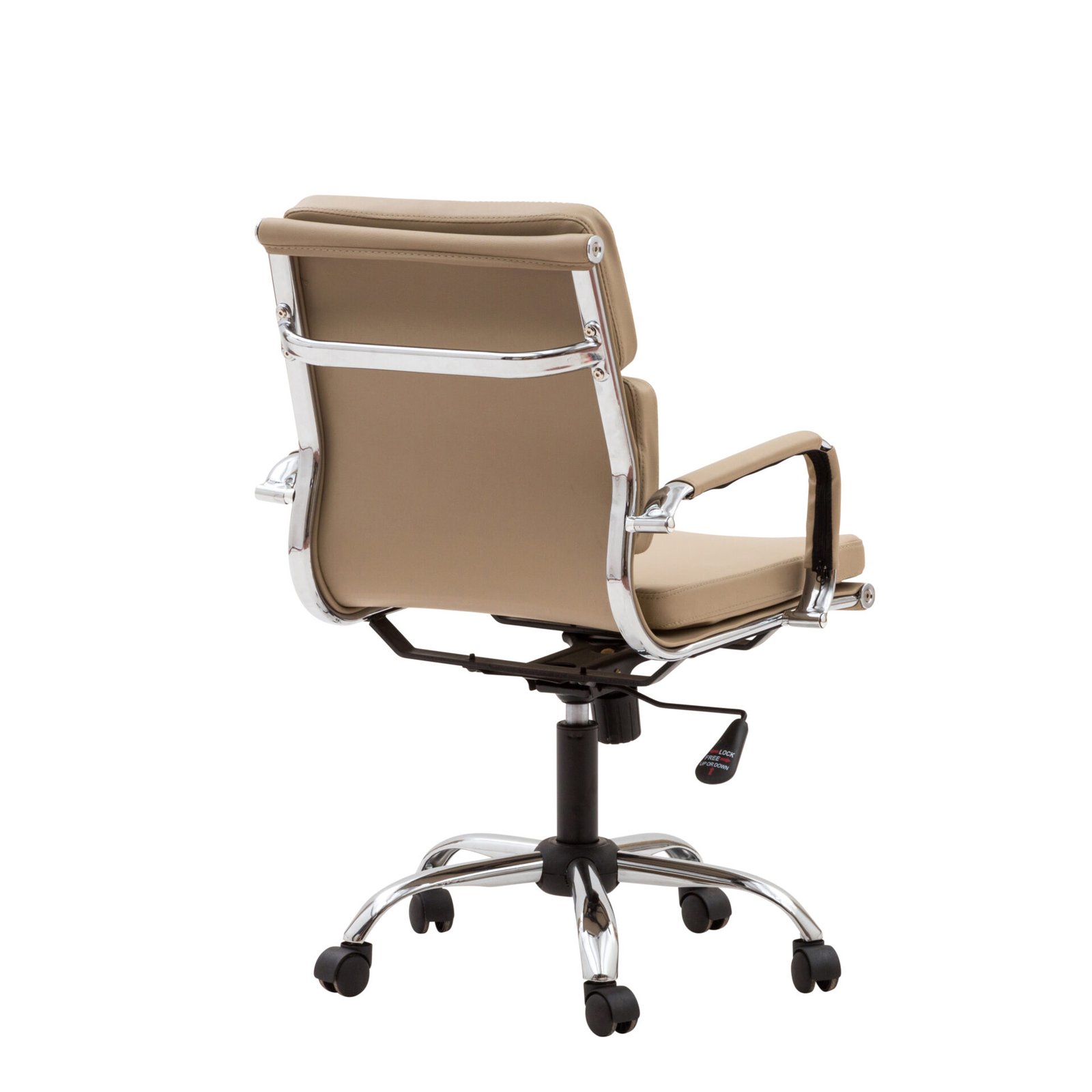 Sedia moderna e minimal, le gambe cromate dalle linee sinuose sorreggono la leggera scocca imbottita e rivestita in ecopelle. Sullo schienale trovano posto due morbidi cuscini, anch’essi rivestiti in ecopelle, che insieme a quello posto sulla seduta accoglieranno il tuo corpo donandoti relax e confort, è inoltre dotata di sistema basculante e di regolazione di altezza a gas, oltre che di cinque ruote. È perfetta per uffici e studi moderni e contemporanei.