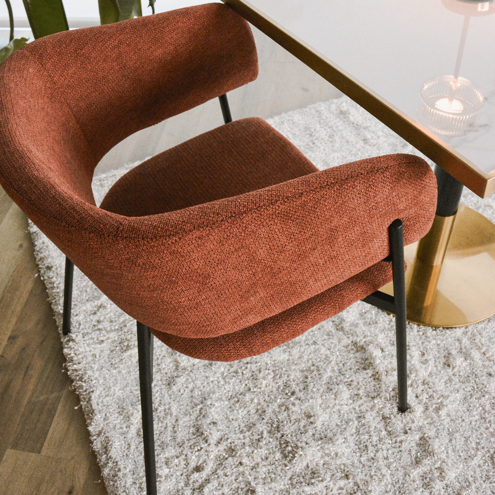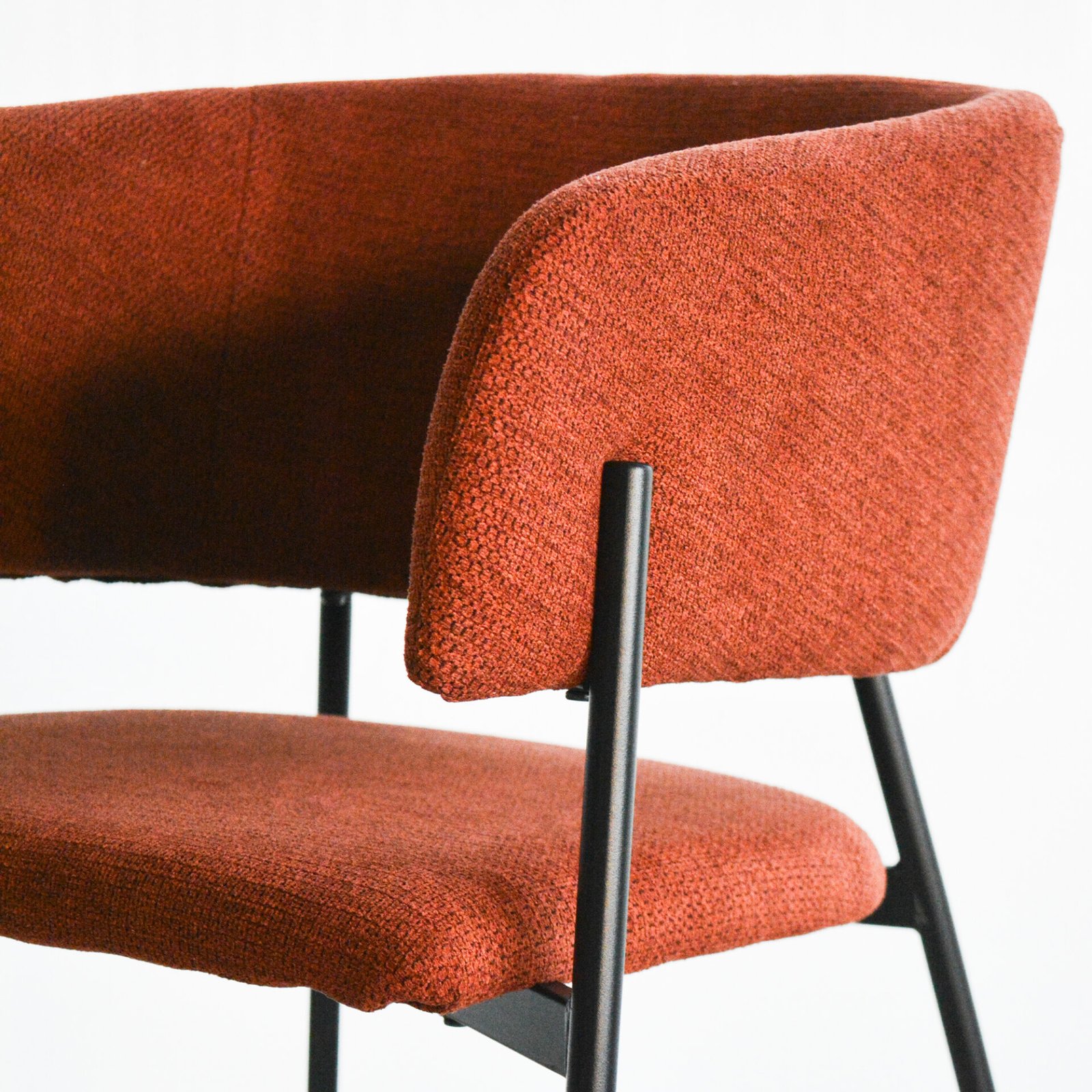 The Brigitte armchair, crafted from durable fabric and featuring black iron legs, adds a touch of style and personality to your living space. The soft, padded seat, backrest, and armrests provide extra comfort, thanks also to its enveloping shape. An elegant and sophisticated chair with a refined, delicate silhouette, perfect for completing your home decor.
