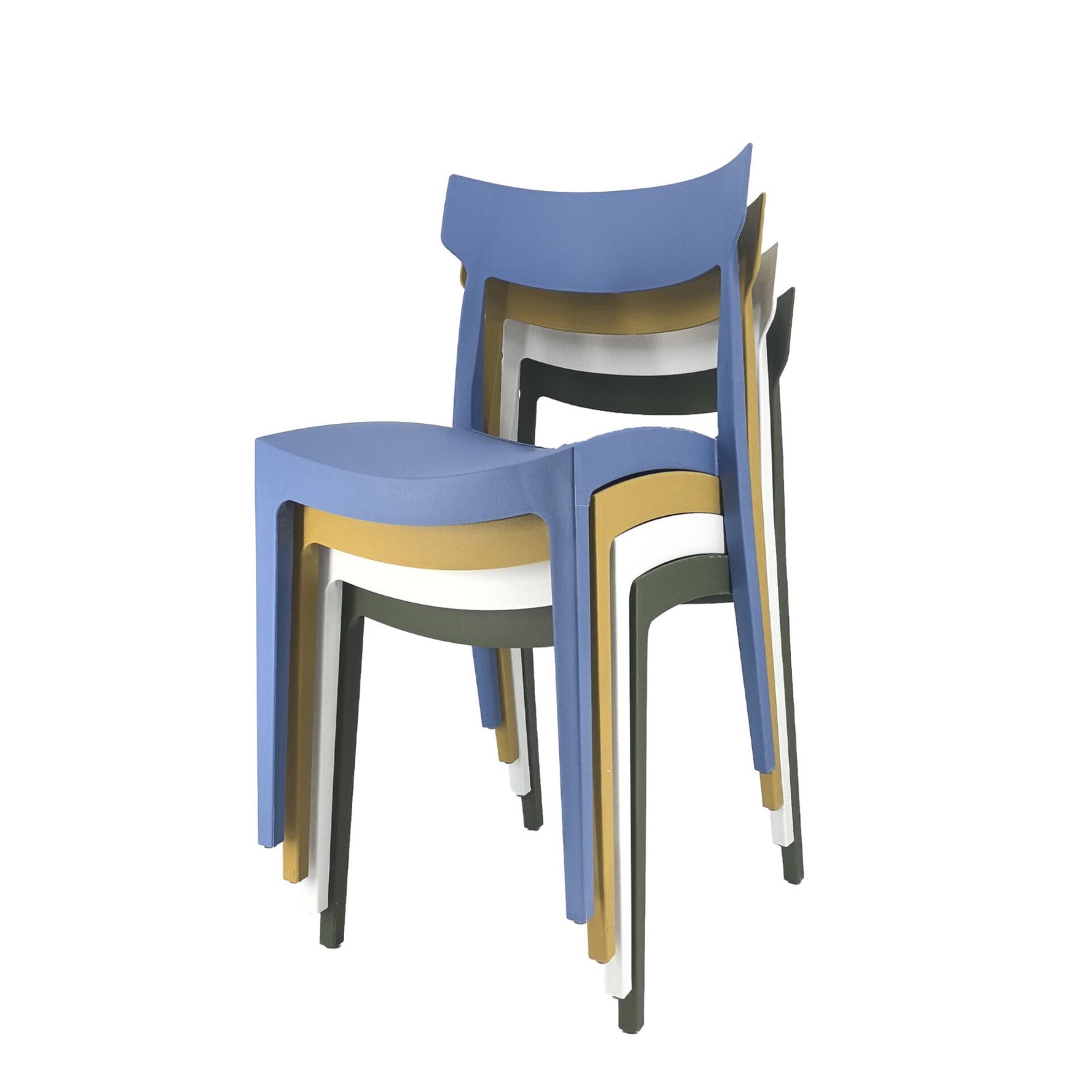 Sedie sinuose e dal design contemporaneo, si abbinano perfettamente a qualsiasi stile di arredamento. Lo schienale leggermente curvo, risulta particolarmente comodo, in quanto segue la conformazione della schiena al fine di assicurarvi un’esperienza di seduta sempre piacevole. Facilmente impilabili e veloci da pulire.