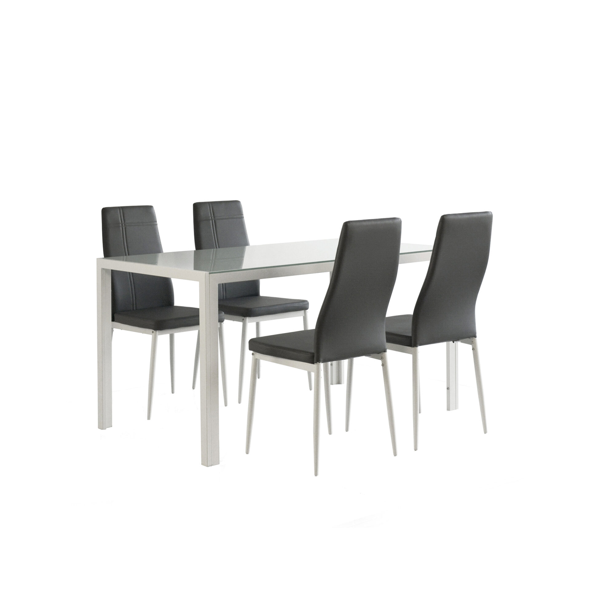 Il design moderno del Set Benny conferirà alla vostra sala da pranzo un’allure moderno e contemporaneo. Il tavolo, in alluminio e con il piano in vetro temperato, e le sedie, dalla struttura in alluminio e la seduta e schienale imbottiti e rivestiti in ecopelle, decorate da una trapuntatura asimmetrica, saranno perfetti per la vostra sala da pranzo o cucina. Pratico, comodo e moderno è il set ideale per coloro che cercano stile e confort.