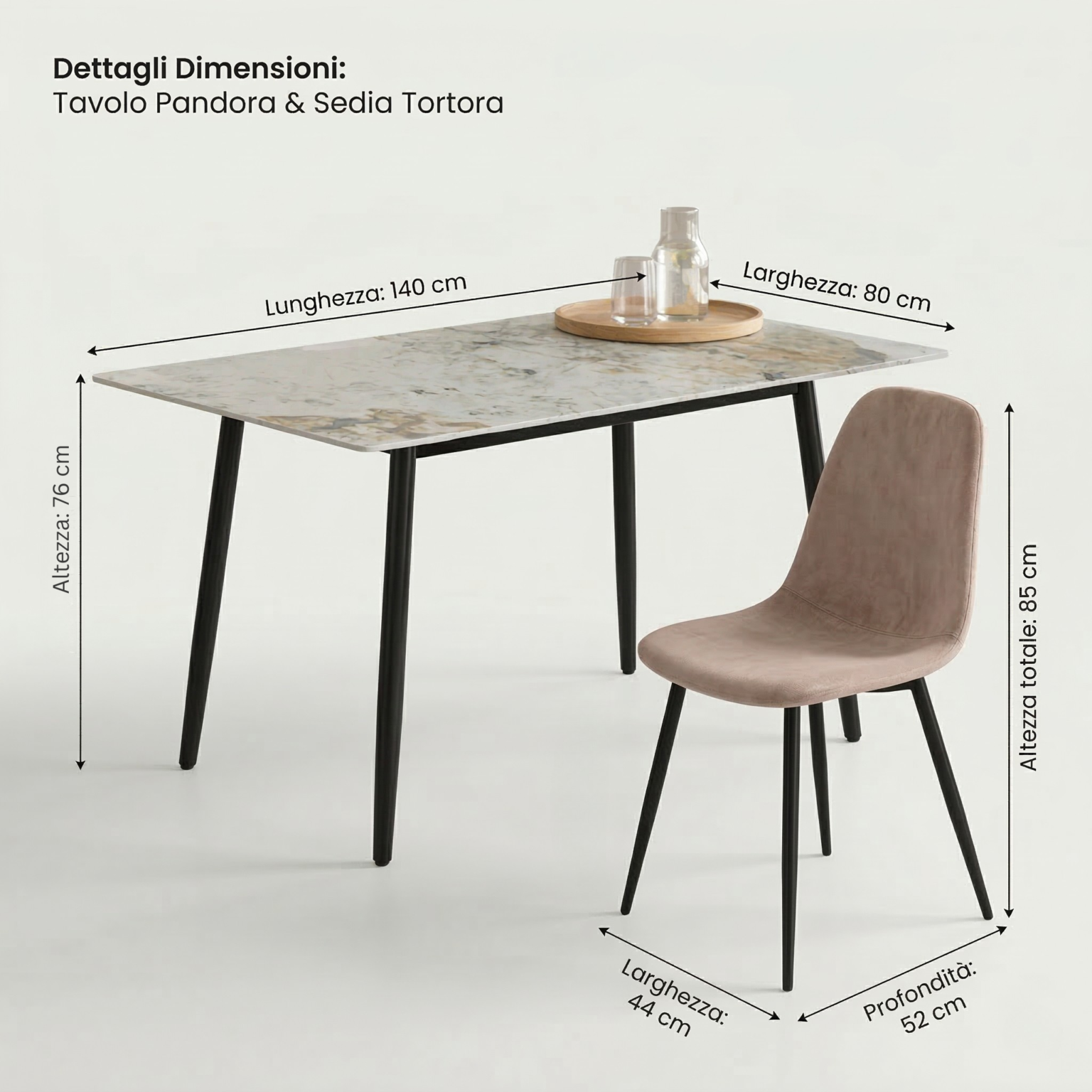 • Dimensioni Sedia: 44 × 52 × 85 cm