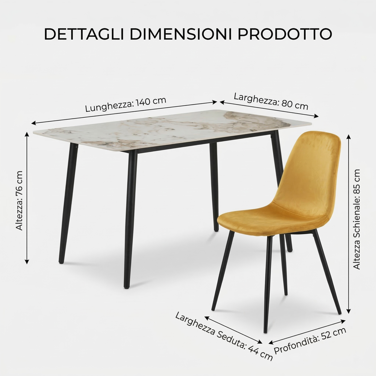 • Dimensioni Tavolo: 140 × 80 × 76 cm