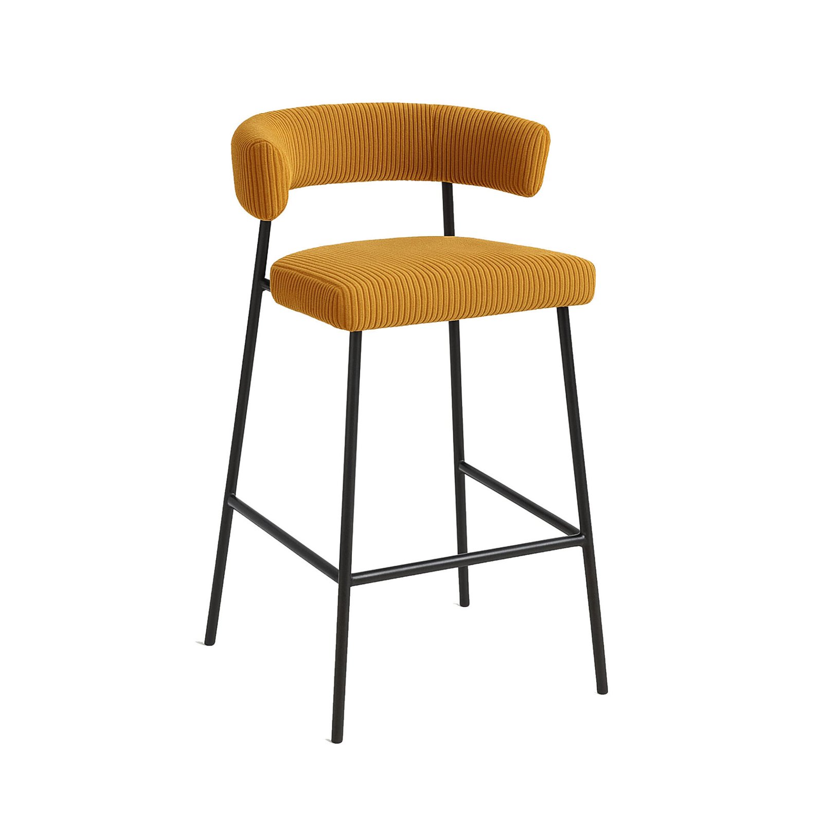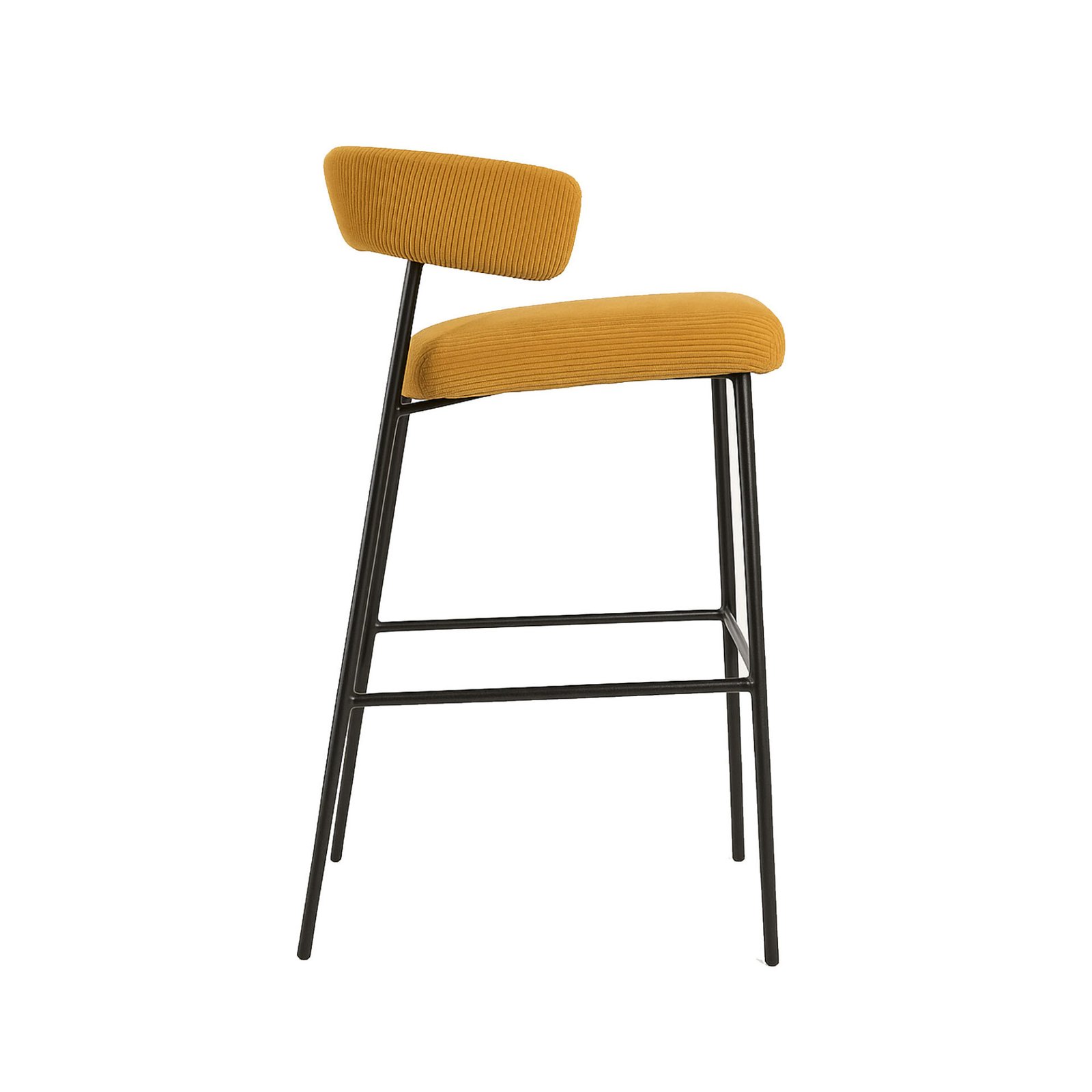 The Megan stool is made of striped fabric, a soft and luxurious material that gives the stool an elegant and refined look. The backrest is curved and enveloping, while the seat is wide and comfortable. The slim, slender legs are made of black metal, giving the stool a light and modern look.