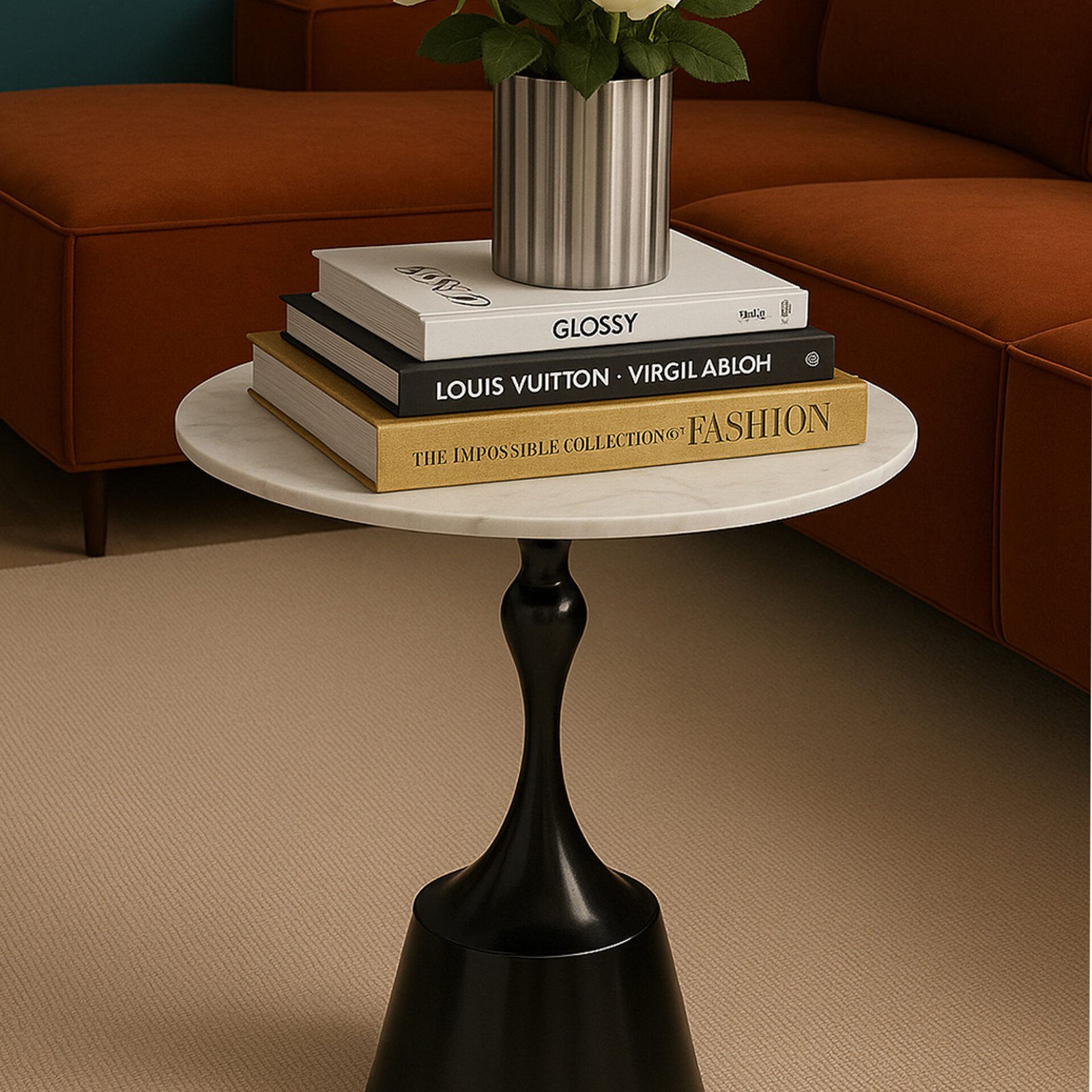 Il tavolo è stato progettato con un bellissimo piano rotondo e una struttura a forma di cono che si completano davvero bene a vicenda. La base a forma di cono contribuisce a garantire che il tavolo sia stabile e robusto, e allo stesso tempo dona una bella espressione scultorea. Il tavolo si adatta perfettamente come tavolino accanto al divano singolarmente, o magari in coppia e utilizzato come tavolini da caffè.