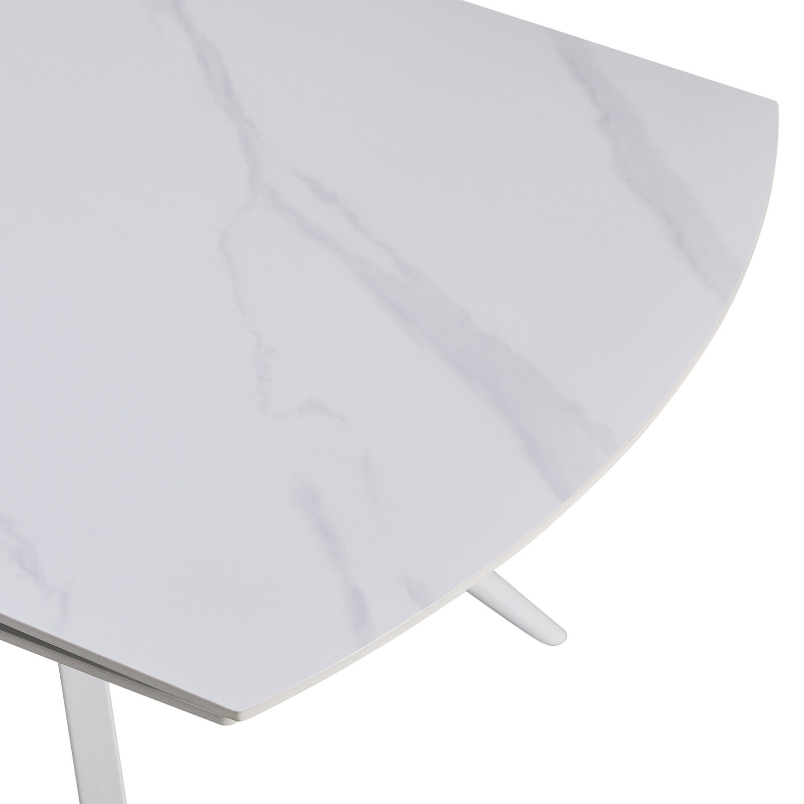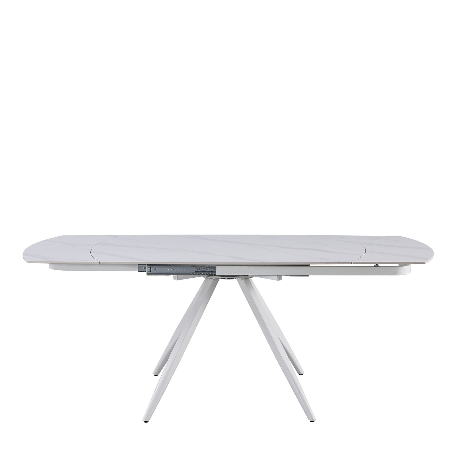 Il tavolo Florida è un tavolo dalle linee pulite ma al tempo stesso unico. Dal design geometrico e lineare, le gambe, in metallo laccate bianche, dal centro si allargano verso l’esterno e sostengono il piano, il cui lati corti presentano linee stondate. Completamente realizzato in ceramica bianca con venature grigie che ricreano un elegante effetto marmo, il piano è estendibile fino a 190 cm, grazie alle due allunghe laterali.