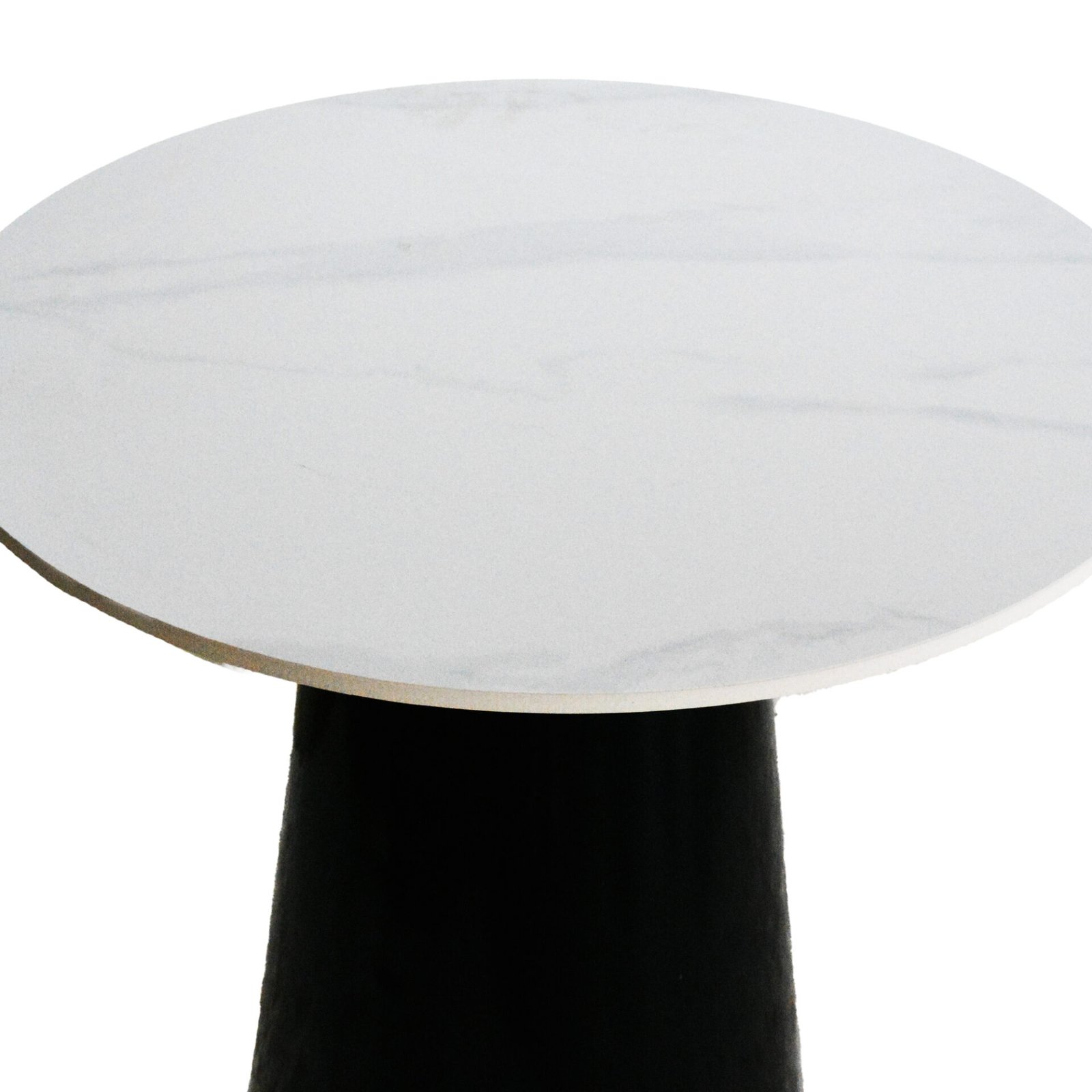 Base in metallo, verniciato di nero, per creare un contrasto visivo con il bianco del marmo.