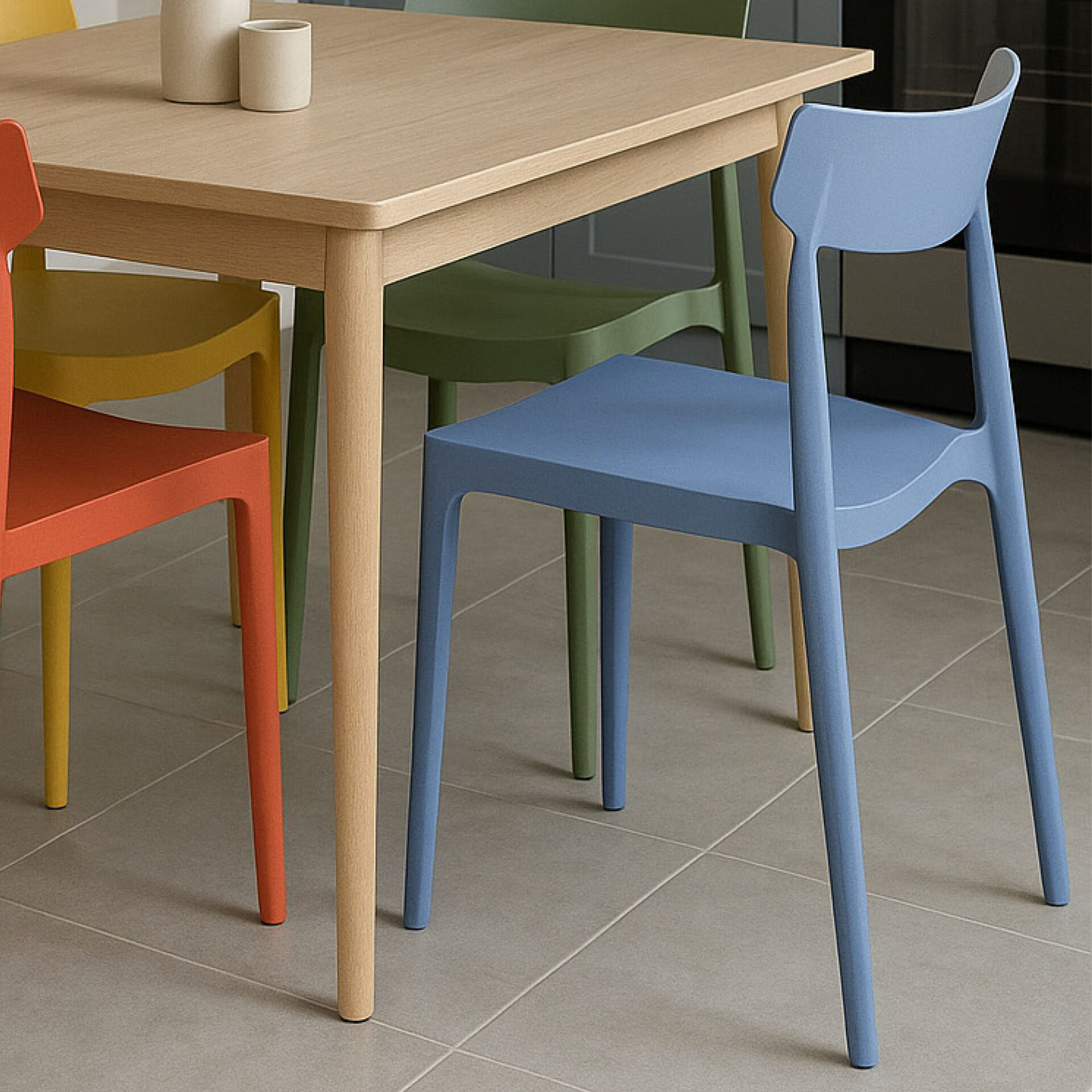 Sedia imbottita in poliuretano ad alta densità e rivestita in tessuto.